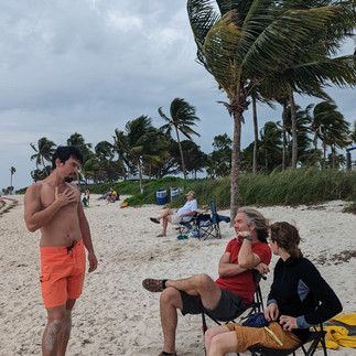 On se rejoint les deux familles aux complet près de la plage pour dîner sur les tables à pique-nique.