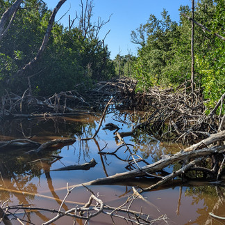 Vincent et Agathe s'occupent de la vidange et de faire le tour par la route pendant que moi, Eno, Camille et Charlotte coupons à travers la zone naturelle marécageuse pour rejoindre la plage.