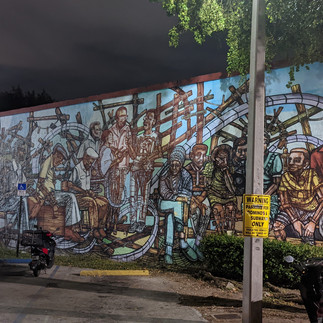 On passe la fin d'après-midi sur la plage de Venice Beach. Il y a de la musique, des tamtam et une femme qui danse. J'avais lu qu'on pouvait y trouver des dents de requin mais on a eu beau chercher, on n'a rien trouvé de tel.