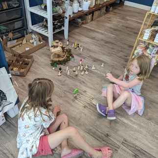 Je profite d'un magasin de vrac pour recharger quelques contenants. Les filles jouent avec des petits bonhommes ne bois et restent super sages le temps que je fasse mes emplettes ...