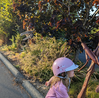 On va faire une petite randonnée dans le bois (la Fairy trail). Super agréable. On dirait une petite forêt enchantée avec des maisons de fée un peu partout au début du sentier. Les limaces ici sont géantes. Je repère des champignons et la lentille Google me dit que c'est des pleurotes mais forcément on ne prend pas le risque de les ramasse. Enora a cru voir un serpent bleu onduler entre les troncs à terre.