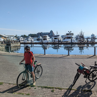 En après-midi, on va visiter la ville de port Hardy qui n'est pas non plus la plus belle. On y va en vélo et juste en quittant le camping on voit des poissons qui sautent hors de l'eau. C'est assez impressionnant. Je pense qu'ici la meilleure activité a faire est de randonner mais il pleut et les filles ne veulent pas tellement marcher. On traine en ville et finalement on passe entre les gouttes.