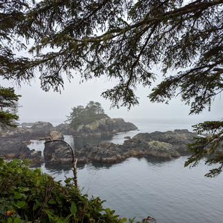 On reprend rapidement la route pour aller vers Tofino. On s'arrête en route dans la petite ville de Ucluelet. On marche du sentier de la Wild Pacifique Trail où on trouve un stationnement sur la Marine Road! On fait un petit aller retour jusqu'à la vue sur la plage.