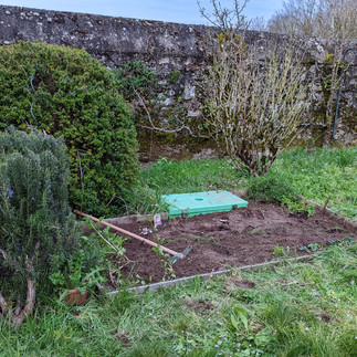 On passe la fin d'après-midi à désherber le carré potager et replanter des oignons et des épinards. On fait aussi quelques semis.