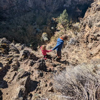 Eno et Alys veulent aller explorer la petite montagne au bout du camping tandis que Agathe et Laurie restent au VR. Il y a des cactus, et beaucoup de Joshua Tree, l'arbre local avec un style très spécial.